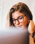New Haven is our cat eye blue light blocker. It has a tad of a wider fit with a flirty feel and may make you just as scholarly as the town it's named after.